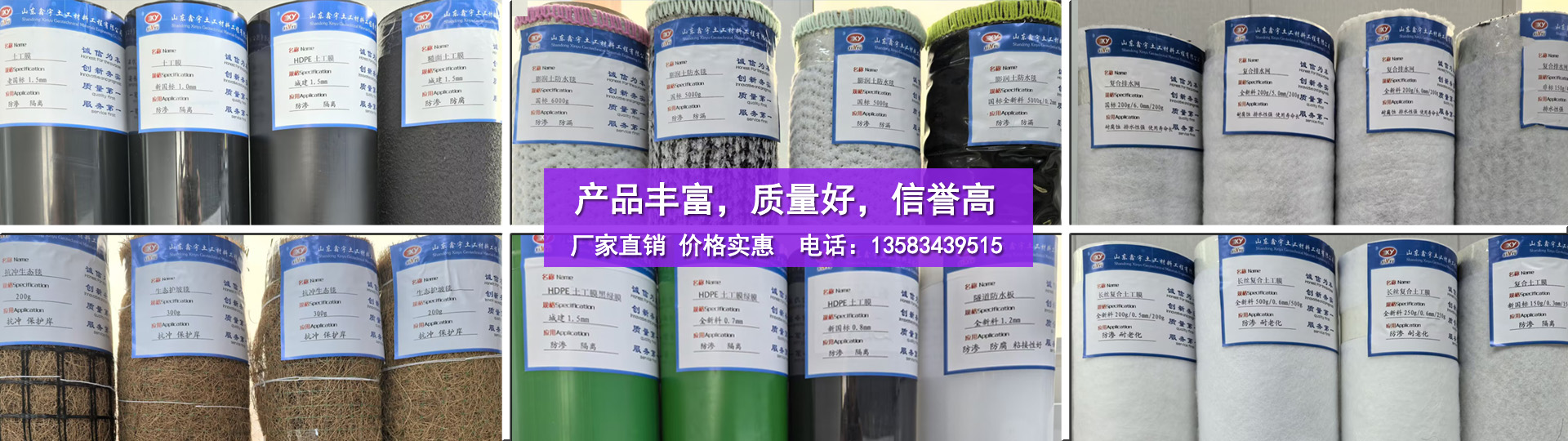 山東鑫宇土工材料工程有限公司生產(chǎn):土工布,防滲土工膜,膨潤土防水毯,排水板,生態(tài)袋,土工格柵等產(chǎn)品,價格實惠,歡迎來我司參觀訂購
